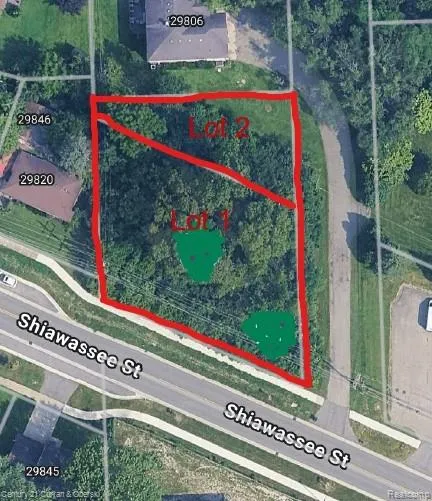 Commercial vacant land, almost 1/2 acre of vacant land in prime location near the intersection of 9 Mile & Shiawassee! Sale consists of 2 separate lots (parcels), zoned commercial, parcel one: 136 x 111, parcel two: 136 x 71 x 122 x 11, 0.42 acres combined, across the street from shopping center with Target, Edge Fitness Club Dunham's & much more, all data apx.