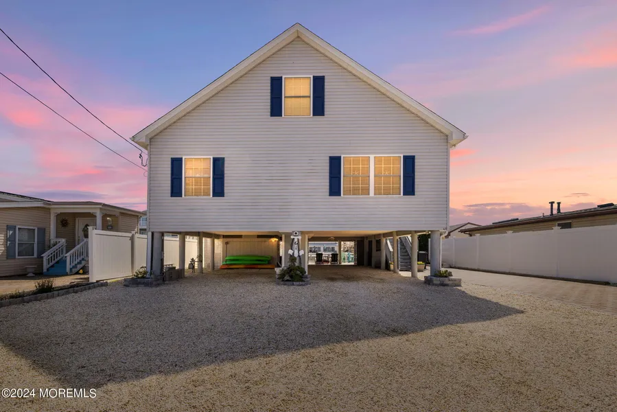 Experience the epitome of coastal living in the serene waterfront enclave of Beach Haven West, where 61 Rona ln stands as a testament to sophisticated design and tranquil living. This elevated home boasting very *LOW FLOOD INSURANCE* unfurls across 2 spacious levels, featuring 5 bedrooms, 2.5 baths, and encapsulating the quintessential coastal vibe with its stunning views and waterfront grace. The property proudly offers 50 feet of pristine waterfront and new trek dock. The 10x30 deck serves as the gathering space to enjoy the views of the lagoon. As you step inside, the open and airy floor plan greets you with a rich infusion of natural light and seamless flow that encourages both relaxation and entertainment. Spend this summer in your own waterfront dream home