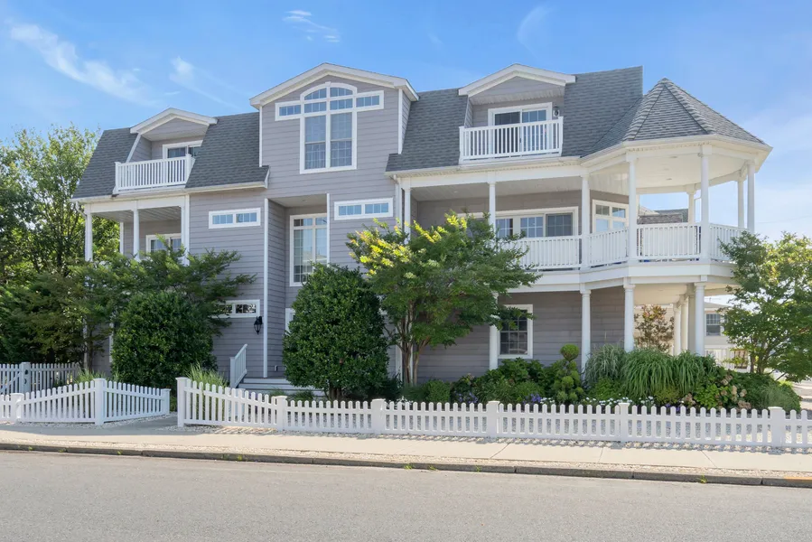 This magnificent property offers unobstructed water views & dazzling sunsets from multiple decks and balconies. Spanning 3-stories & over 4000 sq ft, every inch of this 6BR/3BA home has been meticulously designed to offer comfort, style & functionality. Ground fl w/porcelain tile entry, 3 lg carpeted bedrooms (1 w/private deck), spa bathroom, laundry room, & ample storage. 2nd floor boasts open layout w/9' ceilings, hardwood floors, gourmet kitchen w/6-burner Bertazzoni stove & butler's pantry, LR w/gas fireplace & built-in flatscreen, wrap-around porches w/incredible views, 8-person dining area, & luxe primary suite w/2 walk-in closets & en suite bathroom. 3rd floor has 2 ample bedrooms w/walk-in closets & double-sink bathroom. The sophistication of this home is unmatched, featuring an alluring neutral color palette and exquisite decorative finishes and fixtures. There is ample storage and numerous high-end amenities, as well as a conversion-ready 3-story elevator shaftway. Enter through double doors to the ground floor boasting a porcelain tile entryway and three spacious bedrooms. One bedroom features a private deck leading to an outdoor shower and a fenced-in private side yard. Each bedroom has large closets and tasteful carpeting. The first-floor spa bathroom, featuring marble countertops and porcelain tile with glass tile accents, adds a touch of luxury to daily routines. There is ample storage with a massive walk-in closet, linen closet, and additional storage under the staircase. The laundry room houses a full-size, front-loading Maytag washer and dryer, making laundry day a breeze.Walking up the gleaming hardwood center staircase, you reach the airy, open-plan second floor with hardwood floors throughout and 9' ceilings. The gourmet kitchen is a chef's dream, featuring granite countertops, solid wood cabinets, a generous 4-seat breakfast bar, a stainless-steel double sink with garbage disposal, and high-end stainless appliances, including Bosch dishwasher, Jenn-Air refrigerator, and the pièce de résistance a 6-burner Bertazzoni stove with a sleek stainless vent hood. A charming arched doorway leads to the butler's pantry/dry bar, a mixologist's dream, with glass-front upper cabinets to showcase your glassware and many drawers and cabinets to store your cocktail supplies or create an inviting coffee station. Watch the boats sail by from the light and airy living room with huge windows overlooking Barnegat Bay. The focal point of the living room is a distinctive gas fireplace with a built-in flat-panel TV and a surround sound entertainment system above. Two sets of sliding doors lead to a luxurious wrap-around porch, also with expansive water views, providing indoor-outdoor entertaining at its finest. The dining area comfortably seats eight people, with room to spare for large gatherings. Just down the hall is the primary suite, a haven of tranquility, with two walk-in closets and a French balcony offering 180-degree views. The luxurious en suite bathroom encompasses a shower with a seamless glass enclosure, a soaking tub for ultimate relaxation, and a separate water closet for added privacy. Up one more flight to the third floor, you find a hardwood hallway leading to two more spacious carpeted bedrooms, each with walk-in closets and 180-degree views from French balconies. A beautifully appointed bathroom includes a fiberglass tub/shower with a glass door enclosure and extra-large double sinks. A comfortable seating area offers a quiet place to lounge or read, making this floor a perfect retreat for family members or guests. This pristine coastal contemporary home leaves no detail overlooked. Whether you are hosting an elegant dinner party, enjoying a quiet evening by the fireplace, or simply soaking in the stunning sunset views, you'll discover the perfect setting for every occasion.