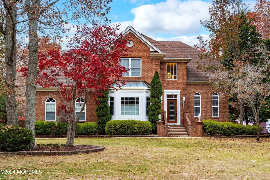 Welcome to 233 Medjay Lane, an exquisite, custom-built home nestled on over an acre, on a serene cul-de-sac, backing to Riverwood Park's beautiful greenery. This 5-bedroom home boasts oak hardwood floors throughout, highlighted by intricate herringbone designs in the front rooms. Enter through the stunning front door into an elegant foyer filled with natural light. The spacious, modern kitchen features granite countertops, a glass/steel backsplash, under-cabinet lighting, and a spacious island for seating and added storage. The fully finished basement includes high Sheetrock ceilings, 3 fans, and plush carpeted rooms plus storage rooms. The outdoor oasis includes a 20x40 in-ground pool, custom built deck with capabilities to be built on, 2 custom built sheds, lush landscaping and custom outdoor lighting. Recent updates include a new AC unit, hot water heater, new pool liner, newer windows, and a full 9 zone sprinkler system. Join this most desirable block in Toms River and call this home yours!