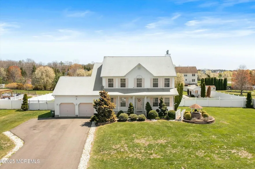 Fall in love and move right in! This custom built colonial in one of Plumsted's most sought after neighborhoods, Hawkin Point is calling your name! With 4 bedrooms, 2 1/2 baths, a partial finished basement, and in-ground pool, this home checks all the boxes and then some! From the moment you step inside off the covered front porch, you'll appreciate the 2-story foyer, gleaming hardwood floors, and will immediately notice the sprawling open floor plan. Decorative columns frame the entry into the formal dining room with chair and crown molding which flows across into the formal living room. Through the foyer, enter the large eat-in kitchen with linoleum flooring, breakfast nook, center island, and storage pantry. Off the kitchen, step down into the cozy family room with a gas fireplace and partial wall columns which nicely frame the space between the family room and living room and add decorative flare. Off the kitchen, a mudroom leads into the 2- car garage and offers access to the back deck. The second floor has four spacious bedrooms. The primary bedroom boasts a large walk-in closet, en-suite with two vanities, a stall shower, and soaking tub. Additionally, the primary bedroom offers access to the balcony which overlooks the foyer, as well access to the attic which can be converted into an office. The basement is partially finished allowing for additional living space with a 16x12 movie room and laundry room. A door off the kitchen opens to the 44x18 double level Trex deck. The gorgeous oasis-like backyard is fenced in with an L-shaped inground pool and 18x10 pool shed with electric. Absolutely everything you could be searching for can be found with this property including a 6-zone sprinkler system to keep your grass pristine!A home warranty is included for additional peace of mind! The pool liner is only 2 years old, and the cover is approximately 4 years old. The driveway was redone about 3 years ago.