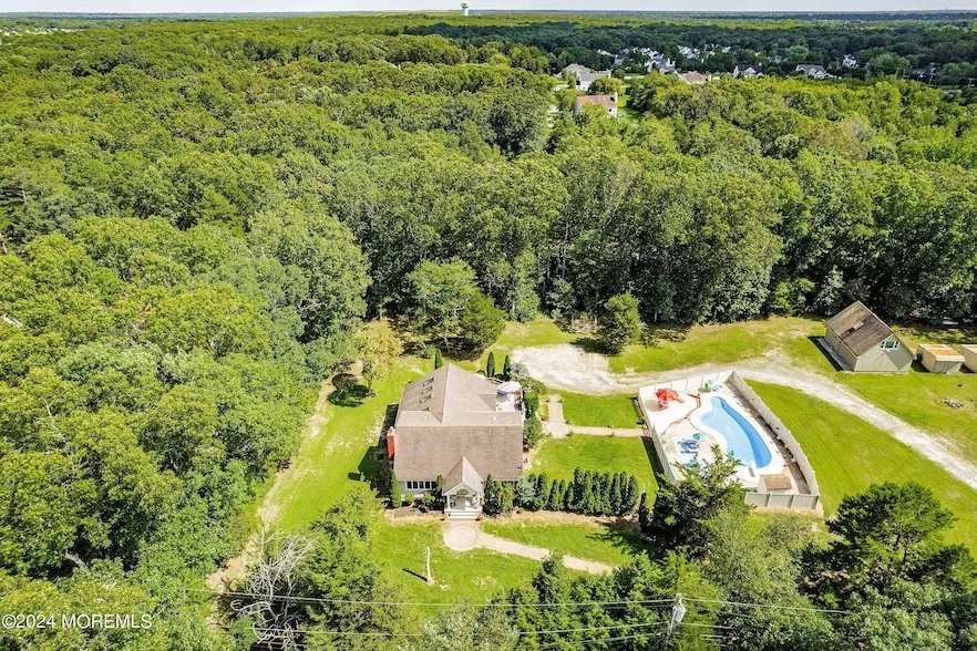 This stunning 3BR, 3.5BA home (possible 4th BR) sits on 2.32 private acres on desirable Quarry Rd. The spacious Great Room features 20' cathedral ceilings and large windows that capture the beauty of every season. The open gourmet kitchen is a chef's dream with 42'' cabinets, Corian countertops, a 7-ft granite island, and 4 skylights. The luxurious primary suite offers a spa-like ensuite bath. A detached 2-car garage includes a loft office and workshop space. The full, partially finished basement offers endless potential. Enjoy resort-style living with a large in-ground pool. With township approval, the property offers potential to subdivide 1 acre. All this just 20 minutes to the Jersey Shore and close to major roadways and shopping!