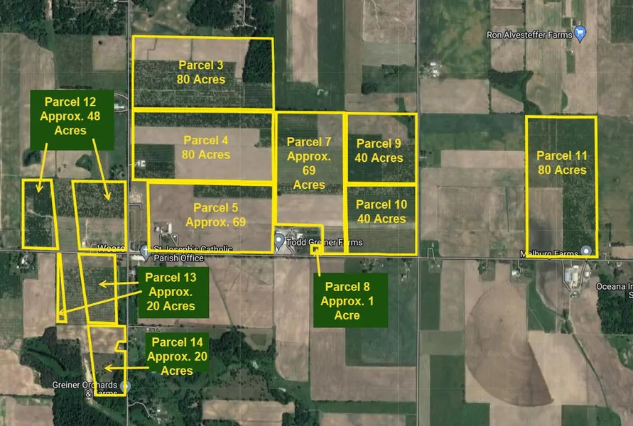 Live Real Estate Auction on Friday, March 7, 2025 at 11:00 a.m.- Approx. 900 Acres of Prime Farm Land and Orchards Selling in 21 Parcels Separately or Together ~ Todd and Sarah Greiner of Todd Greiner Farms Packing LLC have been successfully farming for 30 years, raising asparagus, cherries, apples, as well as other crops and also packing and selling asparagus and other vegetables. They have decided to focus on marketing and selling Michigan asparagus, pumpkins and other vegetables, so they will be selling over 900 acres of land, including migrant housing, and prime farm land. They also will be selling a large lineup of extremely well maintained, housed, farm equipment featuring over 30 tractors and over 30 trucks and trailers. The Greiners are known for taking very good care of their land and equipment. This auction offers prime real estate and well-maintained equipment selling at live ...