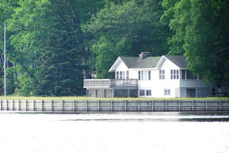 BEST VIEW ON PENTWATER LAKE!!!! From the deck you're able to look Southeast all the way down the lake to the Longbridge, and to the Northwest you can see the Pentwater channel to Lake Michigan. Across Pentwater Lake, the Village spreads out in front of you so you can see whatever is happening, but yet you are insulated from the noise and activity. The cottage sits on three lots with 315 ft. of lake front at your' front door. The small street is a dead-end street that is quiet and tucked away along the lakeshore. The cottage has 3 bedrooms and 1 1/2 baths, and 2 of the most beautiful split stone fireplaces you'll ever see. One in the living room, and one on the lower level. The stone was all brought in from local Oceana Co. farms, cut and split on site by a local stone cutter. Beautiful Lake Michigan beaches are just around the corner with the Pentwater channel within a short walk. This cottage is one of the BEST BUYS in the Pentwater area!!