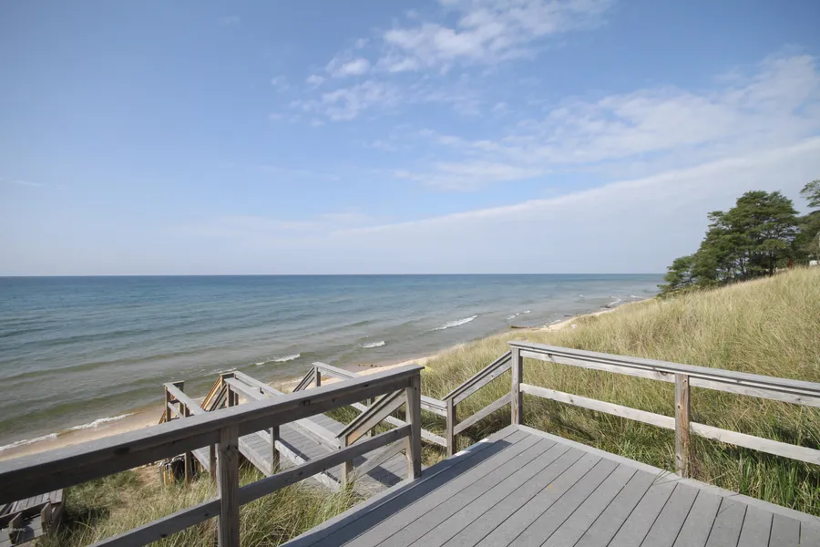 This wooded lot at almost an acre is destined for your dream home with over 2,500 ft of deeded Lake Michigan access. This building site is a short walk to the North beach access point and park area. Enjoy the Cobmoosa Shores Association shared sandy, walkable beach and waterfront. The beach has 2 access points with ducks, beach stairs and paths, and seating to enjoy the evening sunsets. Ideal for sunny days spent in the water or evenings taking in a captivating sunset right from the beach. The Association shared beach stretches from the northernmost and southernmost lot boundaries and has two access points a North and South access. A great location and only minutes away from Stony Lake for great fishing, tubing and kayaking. Close proximity Benona Shores Golf Course and Silver Lake.