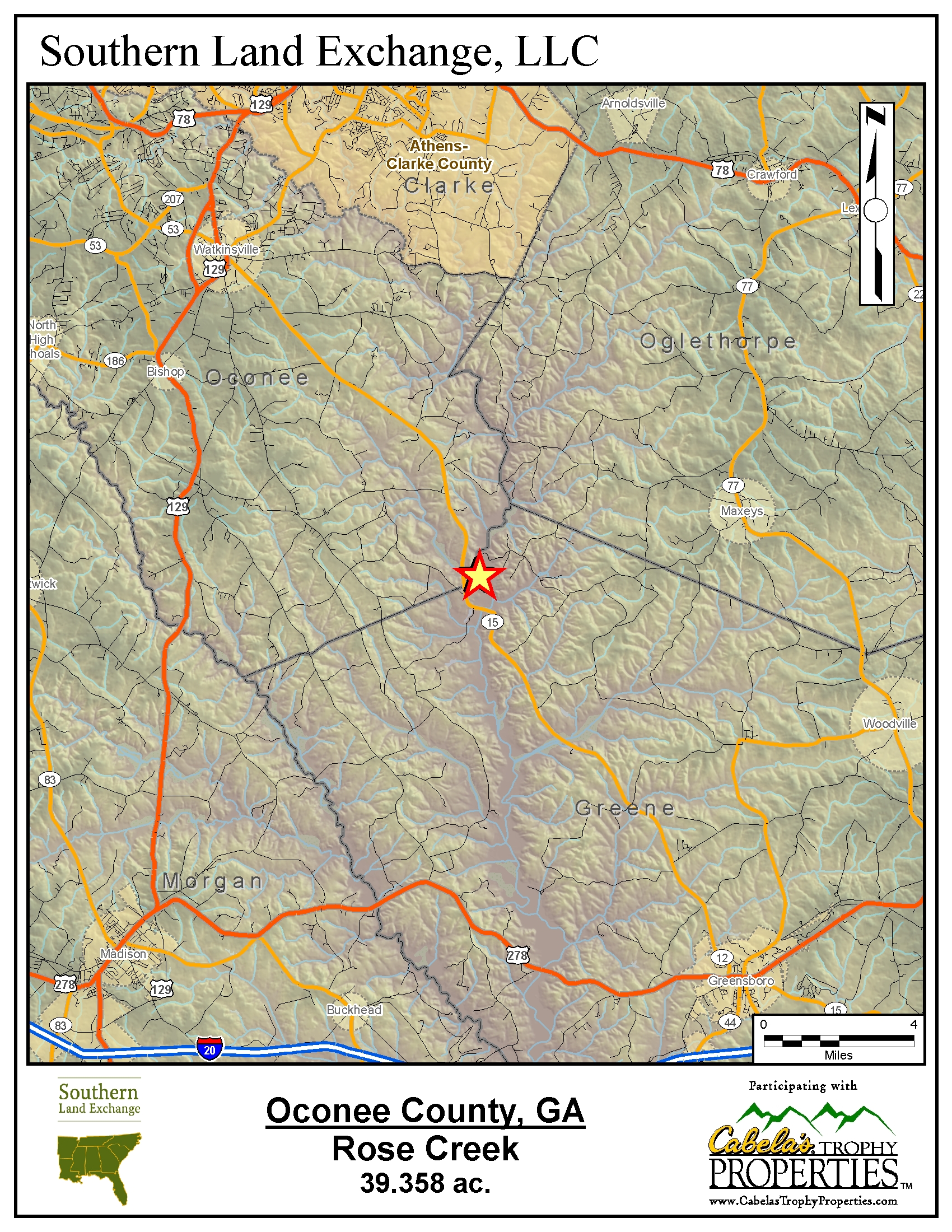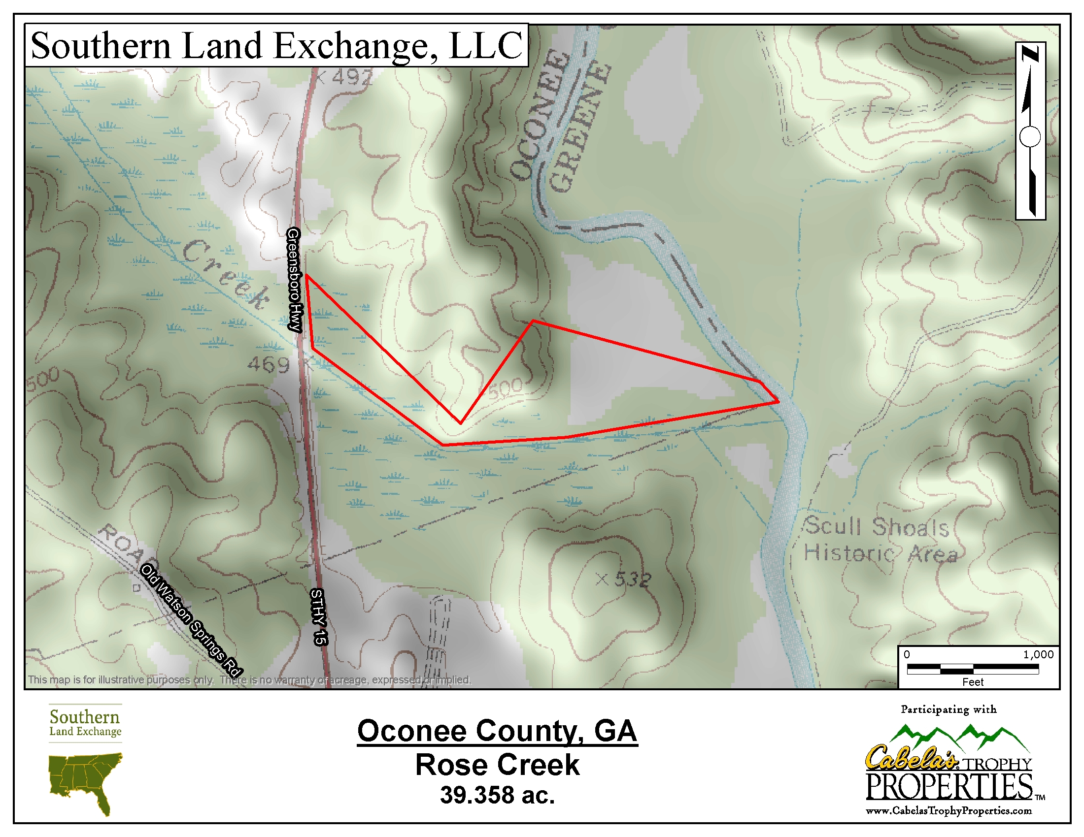 REDUCED!! This property is packed with hunting opportunities not found on properties five times its size. Rose Creek flows along the boundary and provides habitat for wood ducks, which also frequent the beaver ponds on the property. A tall, hardwood ridge is covered with oak trees that drop lots of acorns for wildlife. The large greenfield in the river bottom has been used as a food plot for deer but would also make a great dove field. A peninsula is formed where Rose Creek feeds into the Oconee River, creating a great place to enjoy fellowship with family and friends