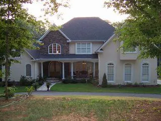 This gorgeous traditional home with "hard coat stucco" has 5 bedrooms and 5.5 bathrooms and is nestled in a private setting on 4.94 wooded acres with very large hardwoods and a creek. View the photos to see how the back of the home has large windows that provide great views. The front of the house welcomes you with stack stone accent and a custom made double entry door. Through the front doors the open foyer has cathedral ceilings. A spiral staircase with iron railing leads you to a walk above the foyer and living room. The dining room is open with white columns defining its space. The kitchen is large with granite counter tops, large center island, flat cooktop, warming drawer, 2 sinks, tile and granite backsplash, lighted cabinets and serving bar with stools that overlooks large family room with stone fireplace, seperate breakfast nook, large deck, 2 laundry rooms, exercise room, study...
