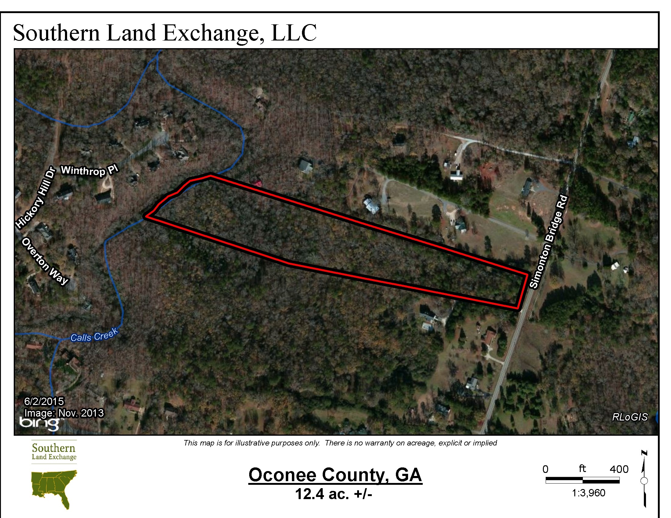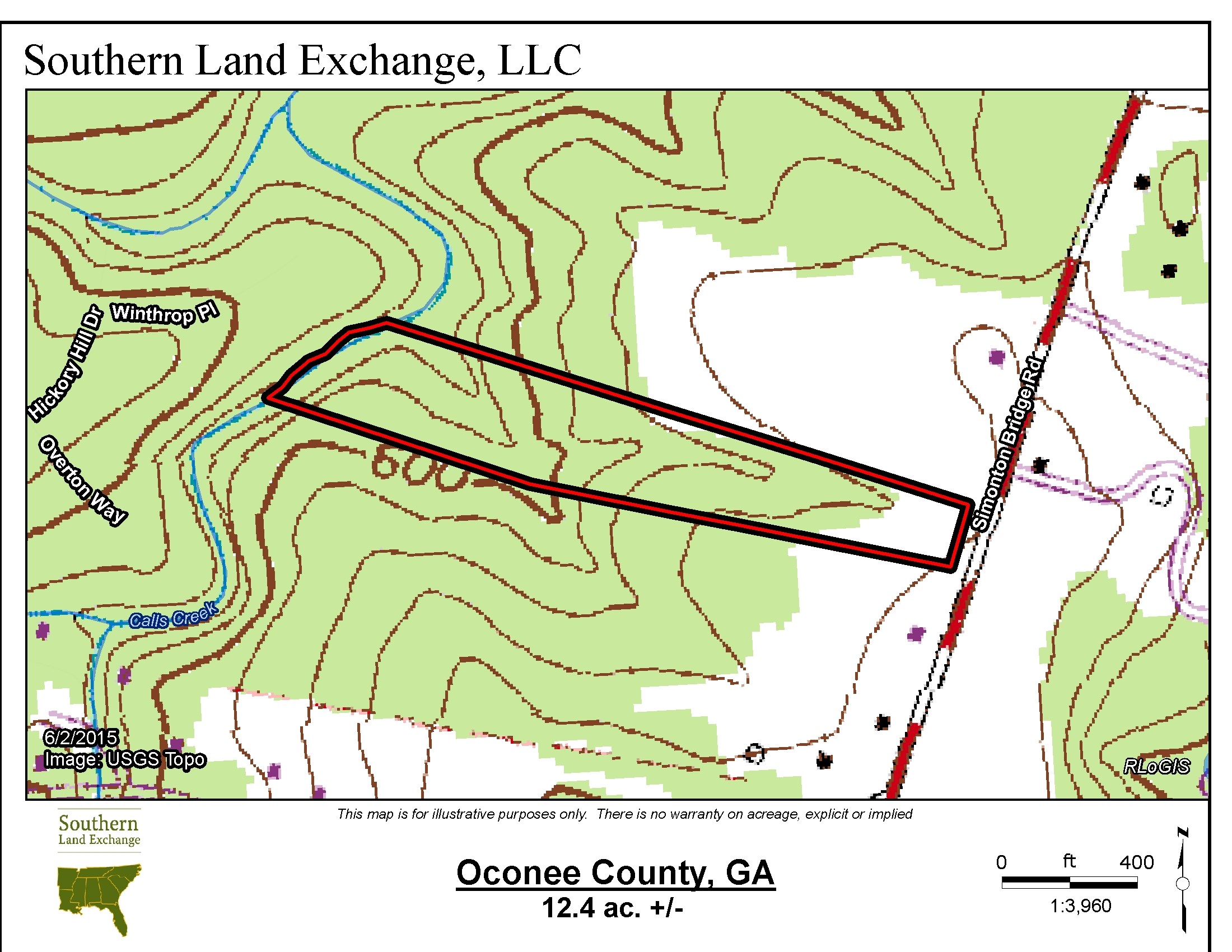 12.4 Acres in Oconee County/Watkinsville!! The Calls Creek Tract is located on Simonton Bridge Rd, just 2 miles from downtown Watkinsville and 6 miles from downtown Athens. The purchaser of this property will be able to select a home site in the mature grove of Oak trees that overlook the shoals on Calls Creek. The property offers the convenience of location and the privacy of the forest. The property has +/- 200 ft of frontage on Simonton Bridge Rd