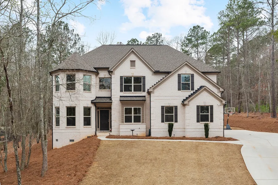 Rare find in sought-after Pembrook Estates on over 1.3 acres! This 4 sided brick home is full of upgrades! Open floor plan with designer-picked finishes including high-end engineered wood floors, a chef's dream kitchen with a large island, farmhouse sink, under cabinet lighting, granite countertops, and motion on/off the faucet. The kitchen opens to the large family room with a wood-burning fireplace. Separate formal dining room with newly added built-in bar with a beer/wine cooler. The main level has a sizable guest bedroom plus an additional office with custom-built barn doors. Upstairs is the primary bedroom with three additional bedrooms, a laundry room, plus a spacious loft with surround sound added that makes for a second living space/playroom/tv room, etc. The master suite is spacious, and the walk-in closet has plenty of room for both! The backyard is to die for! Huge lot with a fire pit and a newly built party/entertaining deck with cafe lights, deck tv, receptacles, and wired speakers. Soak up the tranquility of being away from the city, but close enough to get anywhere you need to be.