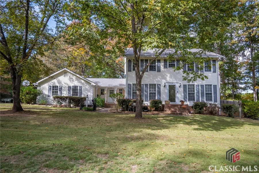 Welcome to this westside beauty! Two beautiful wooded acres with a trail down to the dock and a pond full of fish! Wonderfully maintained two story home with 4 BR/2.5 baths. Gas Fireplace in the living room with access to the sunroom and deck with a fenced in area for the pets. Great eat-in kitchen, garage with utility room and lots of storage. Covered parking, shed, and gazebo.
