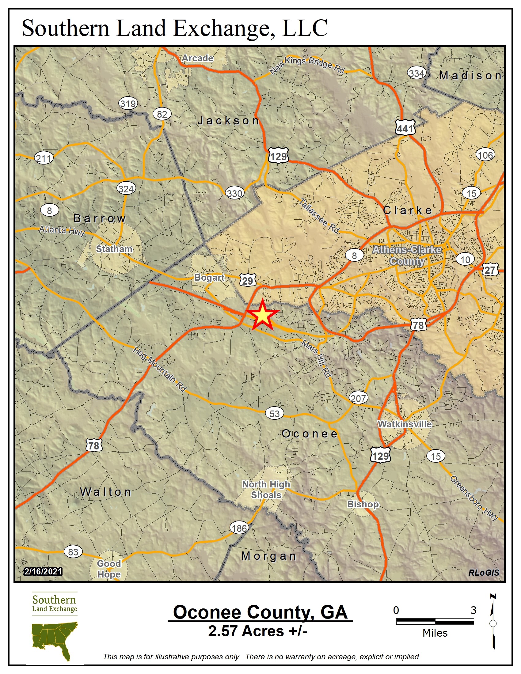 Presenting 1331 Bell Road, a 2.66-acre tract available for purchase in Watkinsville, GA. Also on Bell Road is a 45-acre tract that adjoins 1331 Bell Road. Both properties must be sold in tandem. The subject property has a historic home in poor condition on site that is just over 1,000 SF, built in the 1900's. The home is surrounded by beautiful mature pines and hardwoods. The property is less than a quarter of a mile down, and the last stop on the Northern side of Bell Road with over 200ft of paved road frontage. Situated near the intersection of Bell Road and University Parkway and conveniently located between Watkinsville and Bogart, 1331 Bell Road is less than a mile from HWY 78, 3 miles from Epps Bridge Parkway, & less than 7 miles from Watkinsville city limits. For more information, please contact Travis Ebbert with Southern Land Exchange 706-614-8840.