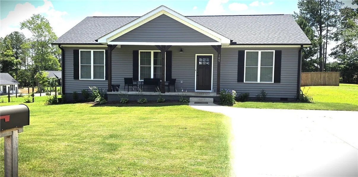 Welcome to this tastefully crafted, single-level home. Built in 2023 with a split bedroom floor plan, this 3 bedroom, 2 bath home has no HOA. From the inviting front porch to the open and airy living area that flows into a stunning kitchen, featuring 9 foot ceilings, granite countertops, stainless steel appliances, hardwood floors and an oversized island ideal for meal preparation and casual dining. The kitchen also offers soft close cabinets while the dining area has custom lighting and a generous pantry with barn door offers ample storage. The master bedroom offers a double vanity bathroom, granite countertop and large walk-in closet. Enjoy the covered deck - perfect for morning coffee or summer grilling. This half acre lot leaves plenty of room to build a garage, start a garden or play outdoor sports. The home is currently under a home warranty. Conveniently located a short distance f...