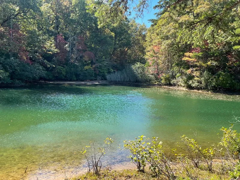 Waterfront lot with dock permit. One of the few waterfront lots available at northern end of the lake. Gentle sloping lot with quiet water and no boat traffic located at end of a large cove. Enjoy a quiet afternoon or evening fishing from your dock. Cliffs club membership available but not required. This property has supplemental covenants permitting short term rental.