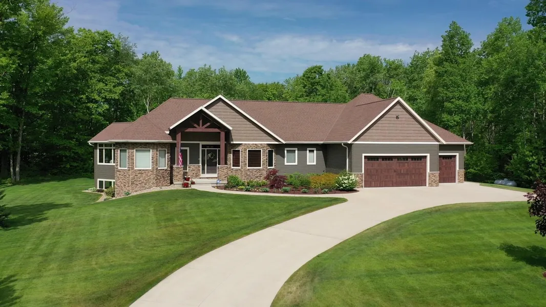 Breathtaking home available in Abrams! Stunning custom-built exposed ranch nestled into the professionally landscaped parklike setting complete with sprinkler system! Main floor living boasts a master suite with sauna, soaking tub, tile shower, dual sinks, & walk in custom closest. The architecture & quality is apparent at every turn from Geothermal & in-floor heating systems to the upscale amenities such as custom built-ins & granite counters tops, sound system, security system, 2 fireplaces, & a 3rd garage stall is more than double deep and heated! Inside & out there is a space for everything! The list of upgrades is available for more details.