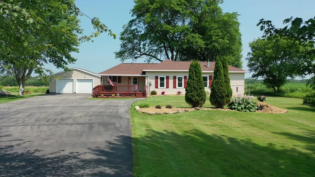 Country living just minutes from Green Bay. Beautifully maintained and landscaped ranch home on 1.5 acres offers a huge living room, office area with woodburning stove, 2 lg bedrooms, 1st floor laundry, 2-stall heated garage w/cabinets. Large well maintained black-top driveway w/ loads of parking. Immaculate private yard with fruit trees berry bushes and producing grape vines. Back yard fenced with a firepit and a great spot to watch the sunsets. 2 newer very nice sheds gives you plenty of opportunity to raise a few chickens and store your extra toys. Partial basement for mechanicals and extra storage. Easy access to the highway. incudes a huge amount of firewood as a bonus. Move in ready! Windows 2016, Mound 2017, roof 2018, driveway 2018, water softener 2024, sheds 2025 per seller