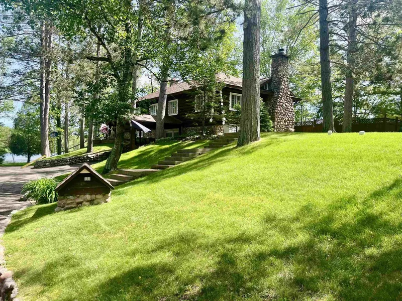 This updated, original log cabin sits on the peaceful shores of Big Island Lake in Oconto County. It offers 3 bedrooms, 1 full bath, and 2 half baths, plus a full basement with a laundry area and extra space for storage or projects. Enjoy outdoor living with a fenced backyard, a lakeside fire pit area, and a patio perfect for relaxing or entertaining. Inside, you'll find a spacious living room with a cozy fireplace and hardwood floors throughout. The kitchen features custom cabinets and plenty of built-in storage. A highlight of this home is the bar area, filled with windows that look out over the water—an ideal spot to unwind. There's also a hot tub where you can soak in the panoramic lake views. Includes a lake side log shed! Over 275' of water frontage.