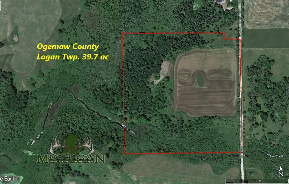 Located in Ogemaw County about 13 miles East of West Branch 39.7 ac!! This vacant parcel has approximately 11 acres that is actively being farmed, with it in corn last year. The remaining is a combination of hilly, high wooded ground with some open areas that would make excellent food plots and low ground around the West and South side. Nester Creek flows on and off the property along the South side. There is great diversity of habitat types that provide the food, water and cover for all the local wildlife!