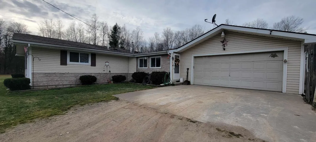 It is not often that such a private and stunning property like this hits the market. This 40 acre slice of heaven is nestled away on a quiet backroad only minutes from Skidway Lake & Prescott. The home is a meticulously cared for 4 bed, 2 full bath home with an attached garage. A spacious open concept kitchen with an island adjacent to a large living room with a brick fireplace. Outside the property boasts an added storage building located directly next to the garage, multiple pavilions, an above ground pool, numerous sheds & so much more! Brand new septic installed at the end of 2023.