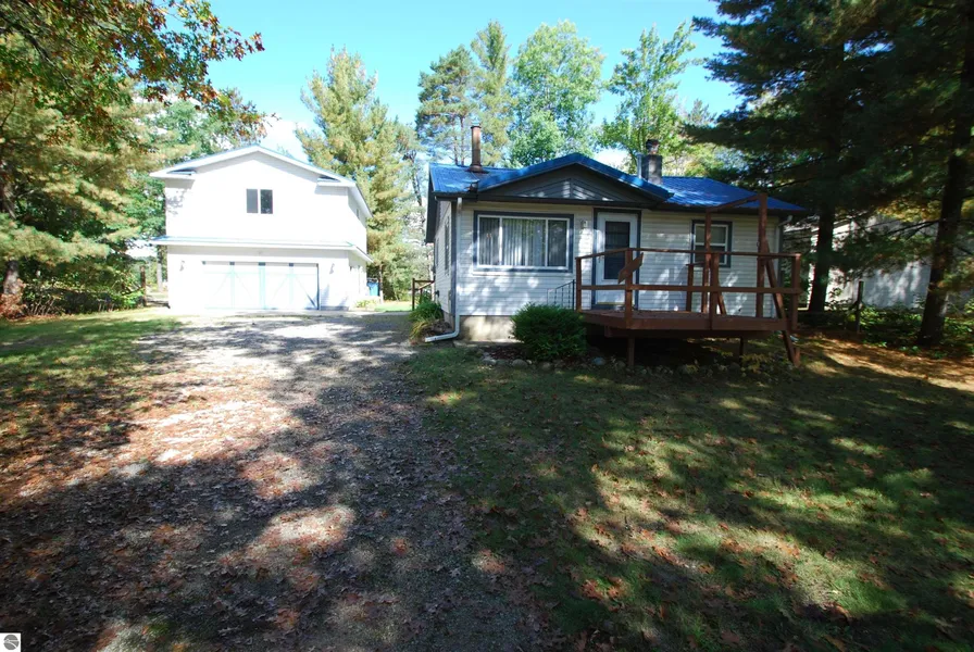 This well-maintained 3-bedroom, 1-bath cottage offers comfort and functionality on a spacious DOUBLE corner lot just a few miles from West Branch. The cozy living room and efficient kitchen provide a welcoming interior, while recent updates—including new windows, metal roof, gutters, and low-maintenance vinyl siding—ensure peace of mind. A 2.5-car garage featuring a durable metal roof and a fully finished second story offering over 600 sq ft of additional living or entertaining space. The garage includes three access points: a main overhead door, a side entry ideal for Jet Skis or ATVs, and a yard-access door. A designated boat storage area is located behind the garage, and the public boat launch to all sports Clear Lake is just a short trip away and just seconds from the trailhead of endless riding, hiking, hunting, or whatever the nature lover desires. Additional features of this home include a 10x10 shed with concrete floor, ample space for camper parking, and room to enjoy the outdoors. Whether you're looking for a year-round residence, weekend getaway, investment opportunity or a property with guest space and storage, this home has it all.