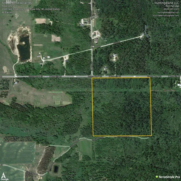 This 40 acres is on a paved road, between Rose City and Lupton. Only a mile east to Rifle River Recreation Area. It does have a hard surface driveway just off the road that gives you a place to park.