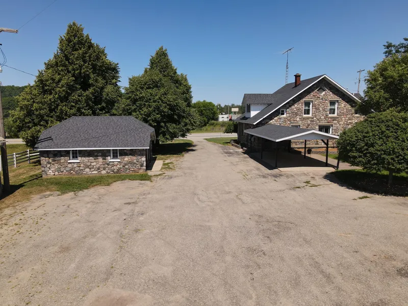 This 5 bedroom and 3 bath home has been completely remodeled from top to bottom, including all flooring, trim, paint, new kitchen cabinets, windows, you name it. The stone farmhouse with a matching stone garage is in great condition. The house with garage and barn has been surveyed off the main parcel to create a 5-acre parcel backing to Campbell Creek. The adjacent barn with silo could be purchased with the house and 5 acres if someone was interested in making the parcel a little bigger. The larger barn would make an amazing wedding venue or added storage area for someone's toys, tools, and equipment. There is even a silo next to the barn that would be the perfect bar for a wedding venue.The house's basement has a finished living space with a full bath and a small kitchen area. The upper level has been completely finished with new carpet and could sleep even more guests or serve as an office or workout area. For the investor, this house would make an excellent Airbnb or bed and breakfast due to its location at the corner of M33 and M55.Campbell Creek flows all year long along the back line of the property and there are several nice spots along the creek that would make an excellent spot for a fire pit and some patio furniture to enjoy.This house is in amazing condition and the updates are stunning. Call today for your private showing.