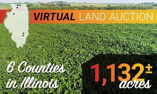 VIRTUAL AUCTION: BID ONLINE OR VIA PHONE A Unique investment opportunity with 1,132+/- total acres, offering diverse locations in Northern, Central & Southern Illinois. These parcels include a high percentage of tillable acres as well as pasture or woodland! Rare Illinois Farmland Portfolio Opportunity 1,032+/- Cropland Acres per FSA There will be open bidding on individual tracts, combinations of tracts, and all 21 tracts as a whole during the auction! 2% Buyers Premium