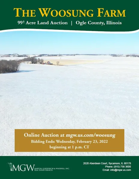Legal Description: A brief legal description indicates The Woosung Farm is located in Part of Section 11, Township 22 North - Range 8 East (Woosung Township), Ogle County, Illinois.