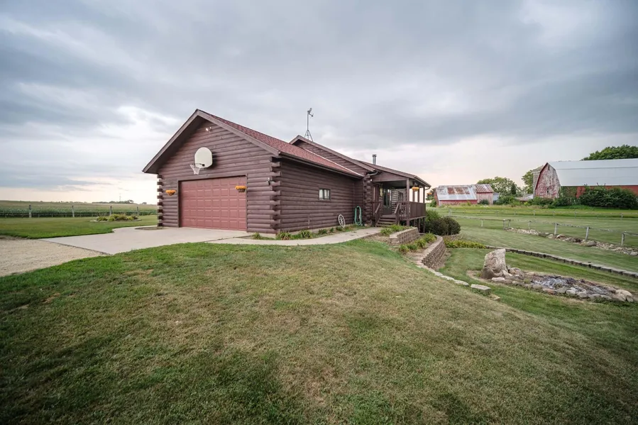 PRICE REDUCED!! Sitting back off of Kilbuck Road is this log home with beautiful views to the east and west. Enjoy the sunrise or sunset from the deck or front porch. Entering the log home you have a nice open floor plan from the family room, kitchen, and dining room with vaulted ceilings. The kitchen has lots of counter space, storage, and bar seating at the island. Stainless steel appliances are included. The large family room features a double-sided stone wood fireplace. An oversized 4-season room with slider leads you onto the deck. The main floor has two bedrooms and 1 bathroom. The Master bedroom has the other side view of the fireplace. The lower level has unfinished space with an additional bedroom, an unfinished bathroom and laundry area and is a walk-out. Off the rear of the home is a large tiered deck and above ground pool. A large mudroom takes you out into the oversized garage with a workbench and storage area. A 24x48 outbuilding houses 3 stalls and there are 3.5 acres +/- of fenced pasture. This property is set up for animals. Zoned Ag. Close proximity to I-39/I-90 access. Close to the stores and amenities of Rockford but still enjoy county living. Meridian 223 School District. In cooperation with Keller Williams Signature Realty. Call the listing agent today to schedule a showing.