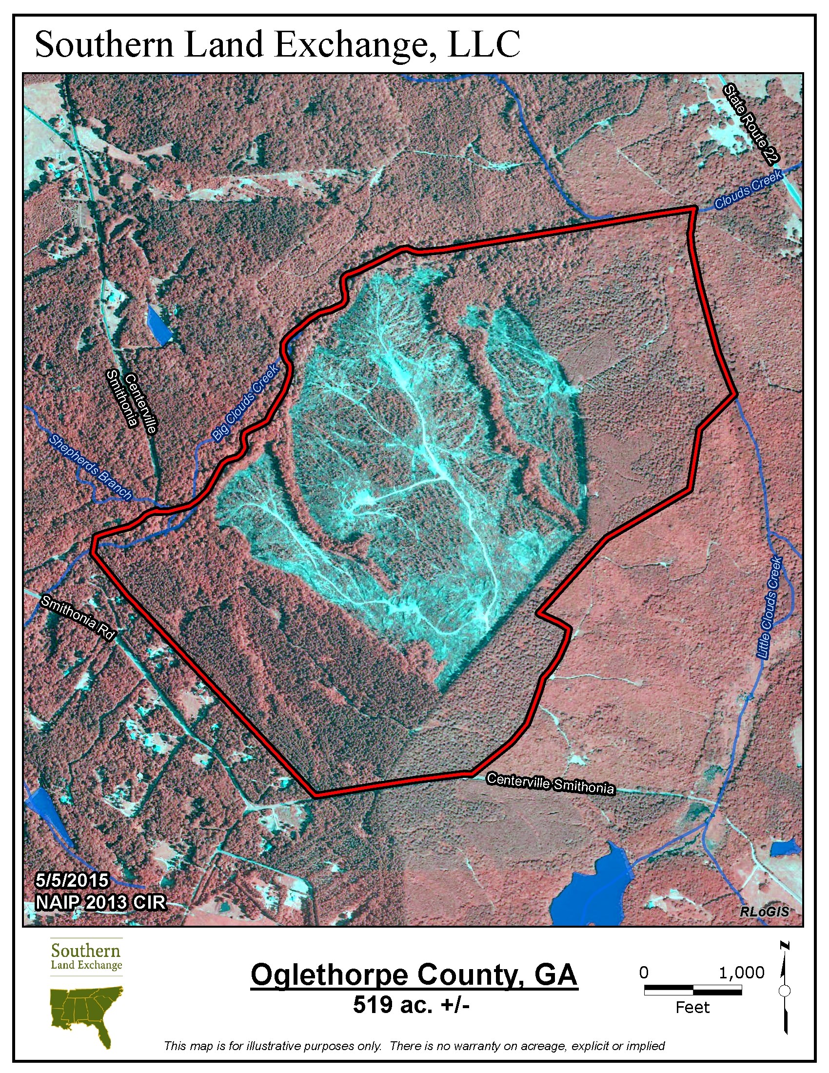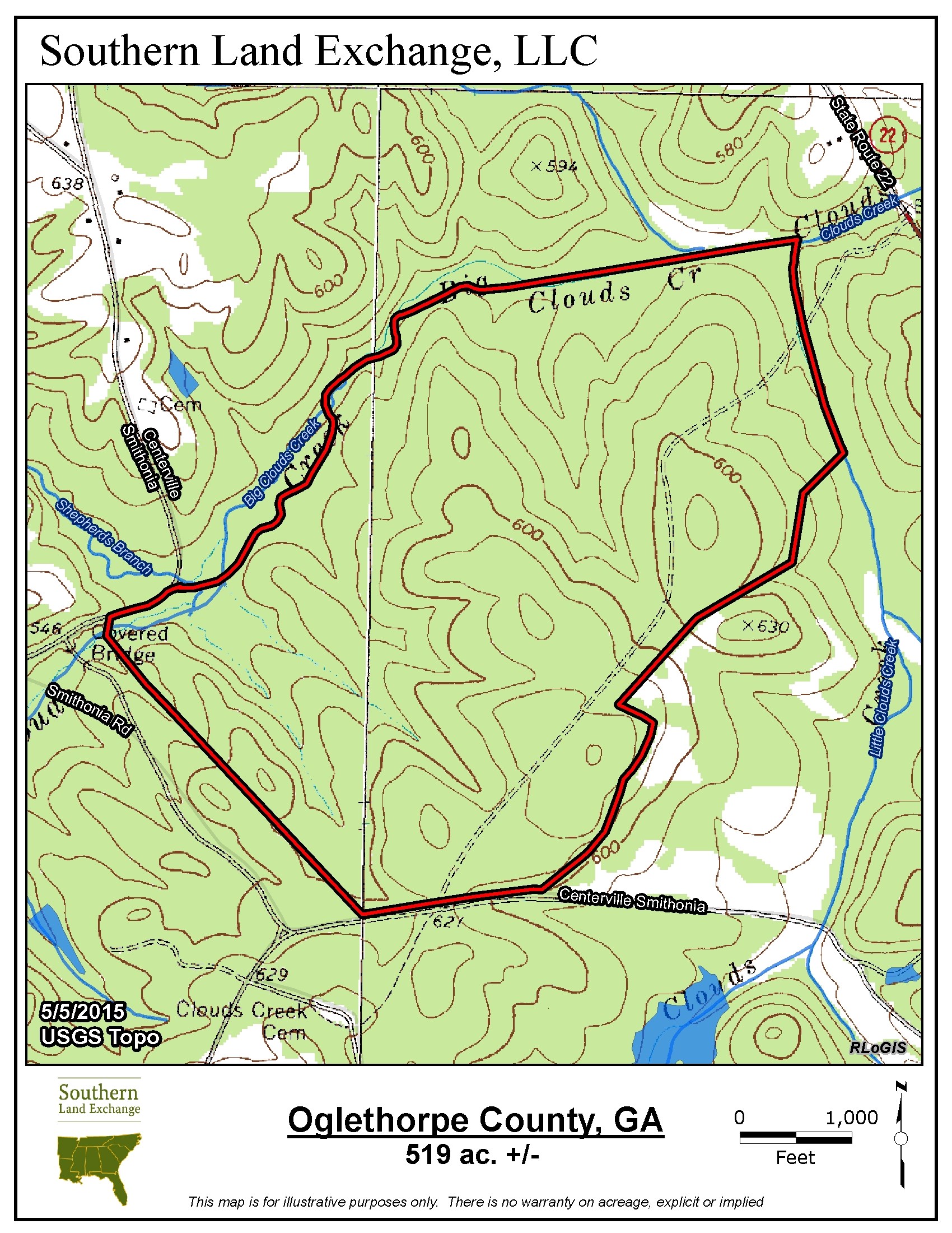 This tract is good timberland with approx. 191 acres in merchantable and pre-merchantable pine timber. 121 acres in hardwoods and 206 acres in a clear cut area that has been site prepped for replanting in pines. Big Clouds Creek crosses the property and makes one property line. Little Clouds Creek in another property line. There are several lake sites. The cut over area exposes a hill top which is a high outlook with a long panoramic view of the countryside. This would be a perfect home or cabin site. This area is known for its whitetail deer and turkey hunting. There is an excellent interior road system.