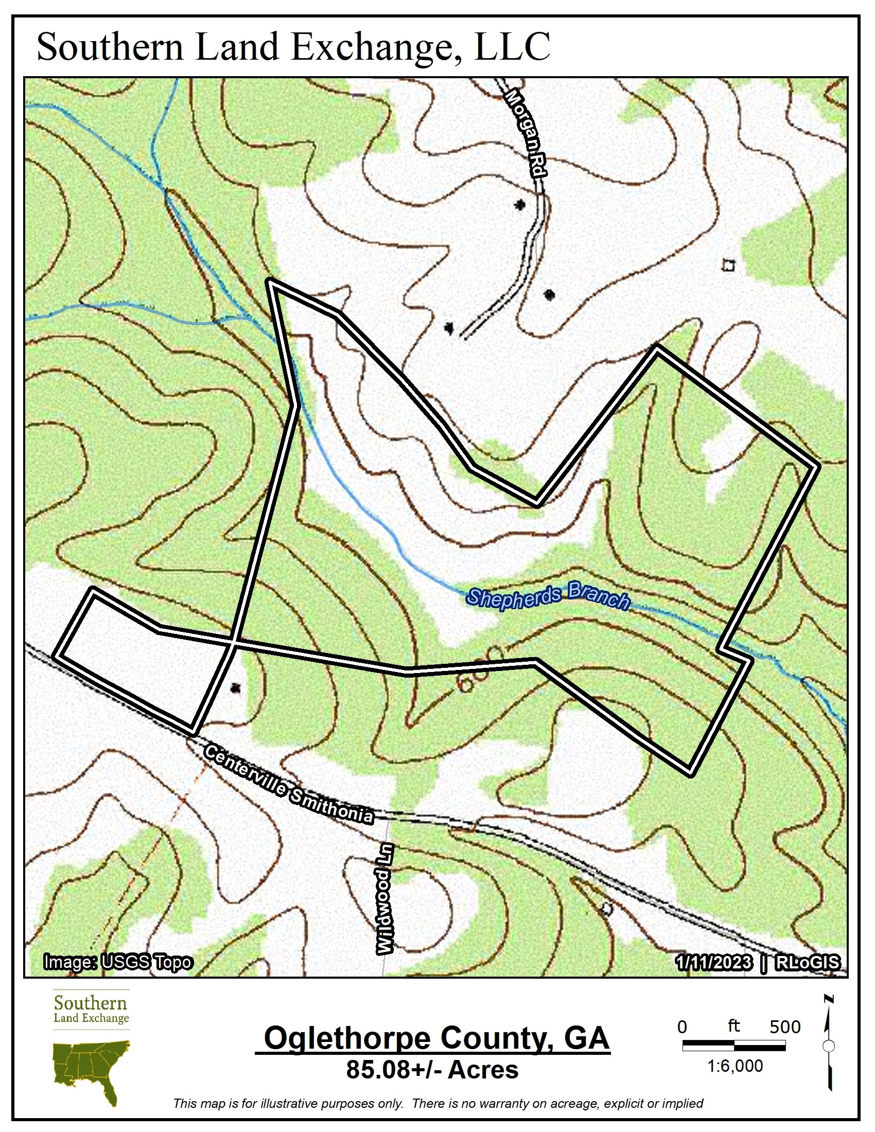mix of open and wooded acreage with a beautiful 7-acre pasture fronting Smithonia Road. The property offers over 700 ft of frontage on Smithonia Road as well as 2,650 ft on Shepherd's Branch. If you have been looking for a recreational tract in Oglethorpe County that is a manageable size and conveniently located, this is the tract for you. Come see it for yourself. For more information, call Travis Ebbert with Southern Land Exchange at 706-614-8840.
