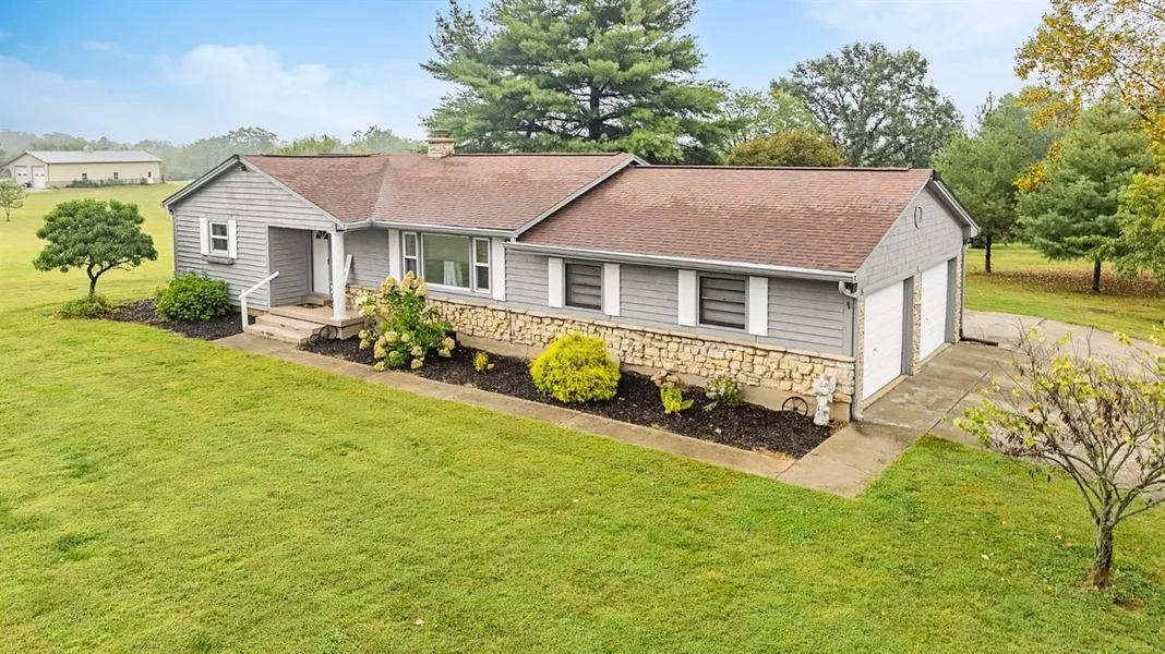 Welcome to 3558 Bellview Ln, a beautiful and peaceful 3 acre country setting that includes a well-maintained ranch home with full basement, attached 2 car garage, and a 30x40 pole barn with concrete floors, 10 foot door, electric, and 9x40 lean-to. Many recent updates including both bathrooms remodeled, one in 2025 and one in 2022 and new concrete patio perfect for relaxing & grilling. Two large bedrooms. Master suite has an attached full bath. Hardwood flooring throughout. (Except master but hardwood is possibly under the carpet.) Living room has gas fireplace for those cold country nights. Home has geothermal. Large basement creates a ton of space for storage or could be finished. Convenient location puts you a 5 minute drive to town of Rising Sun and 10 minute drive to Aurora. Seller offering 1 year home warranty. Schedule your showing today!