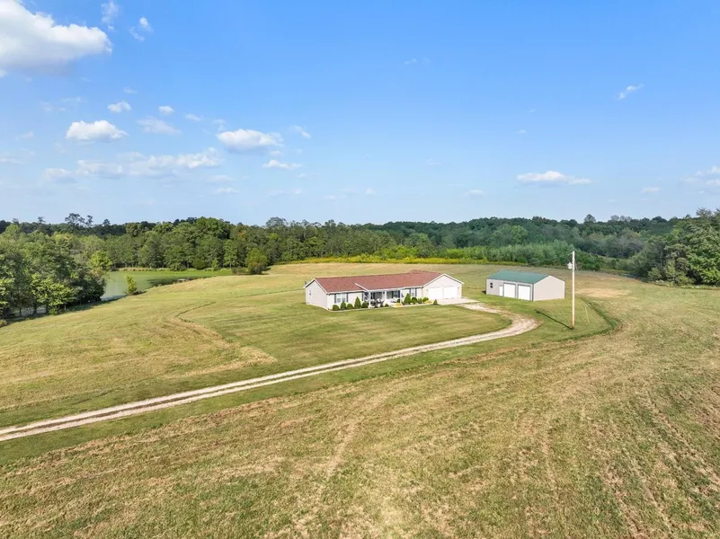 Trade the noise of the city for the sound of nature at 4146 Milton Bear Branch Rd. Set on 13.71 acres in Ohio County, this 2017 modular home offers 3BR/2BA and 1,792 sq ft of living space, a 30x30 attached garage, 30x40 pole barn with electric, concrete floor, and workshop, plus a 1-acre stocked lake. An additional 4.02-acre tract is includedideal to build another home or hold as an investment. The land offers open pasture that lays perfectly for future horse facilities, areas of woods that draw abundant wildlife, and room for recreation, gardening, or small farming. Inside, the home has an inviting open floor plan where the living, dining, kitchen, and family rooms flow together, creating generous space for gatherings. The split bedroom layout features a private master suite with large bath and walk-in closet, while two additional spacious bedrooms share a full bath on the opposite side. Comfort inside, adventure outsideyour country lifestyle awaits.