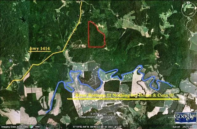 2 hunters $995 per person and you get all KY Gun Season!! This 200 acres in Ohio Co., KY is part of a 972ac farm that sets right above the Rough River Bottoms. Nothing but bean fields and corn fields for miles. This is a large area with no roads through it so these Big Bucks can grow old roaming the River bottoms at night and moving back into these Hardwoods during the day. Come hunt this farm and you will see P&Y Bucks. Call Scott today 270-791-2538 agent interest