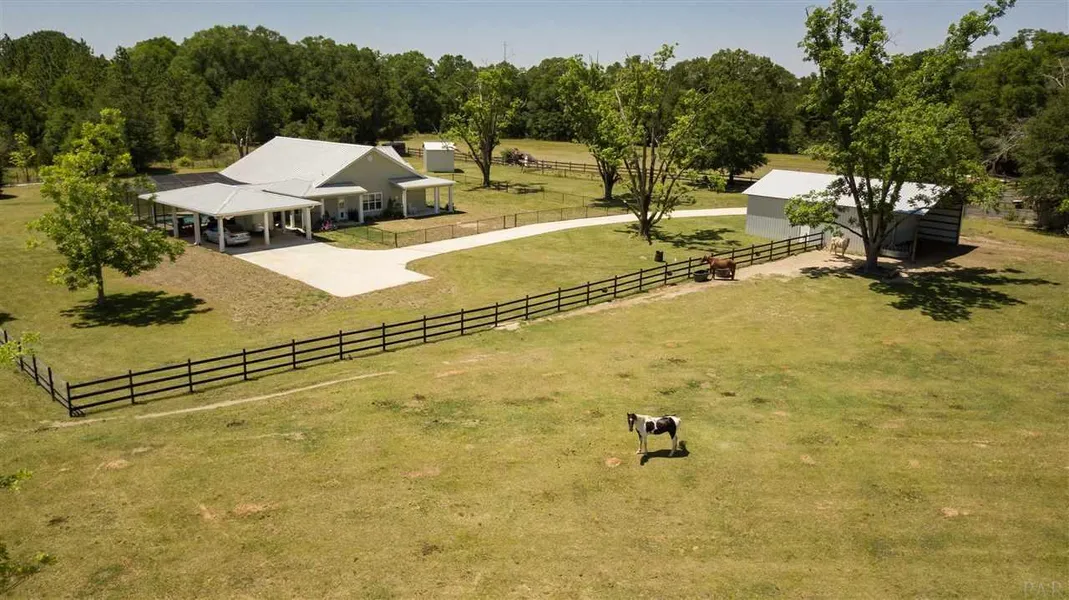 Attention to detail in every corner of this Beautiful Country Estate. RARE Find to discover New Construction of the highest QUALITY in the country on 25 acres with a POOL and 2 BARNS, and yet Less than 15 minutes to major grocery stores, shopping and schools. Quality Construction from the slab up including porcelain Wood Plank Tile flooring, Ship Lap walls, Crown Molding, and Tongue and Groove Heart Pine ceilings THROUGHOUT the ENTRIE house! Topped off with a top of the line standing seam metal roof. Custom features include: large farm sink, quartzite counter tops with tiled backsplash, and auto-close custom cabinetry in the kitchen. Spacious living room with built in cabinetry and electric fireplace, Master Bath has a walk in tiled shower and Jacuzzi tub, double vanity with quartzite counter tops. In Ground Gunite Pool installed in2018 with a full screen enclosure offers covered and protected outdoor patio space to enjoy gorgeous views of the pastures while your horses graze on over 15 acres of fenced pasture. The 32 X 35 metal Barn was built with a reinforced 8 inch concrete slab for parking heavy equipment but could also be converted to stalls, In addition, there is a 30 X 36 old wood barn, that just adds country charm to this property, but has many uses for storage, stalls, or the attached chicken coop. Home is built to withstand 160 mph winds, and built for high efficiency energy usage. Schedule a showing today to view this AMAZING property. Additional acreage is available.