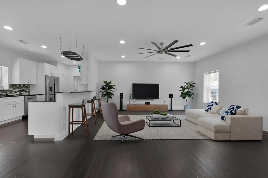 You MUST SEE this home! ENERGY EFFICIENT ICF (insulating concrete form) home. Better construction and value than a standard build. This contemporary home is so cool! From the metal siding and stone accents to the hurricane impact windows and doors, to the negative edge POOL with low maintenance salt system, you will appreciate all the features this home has to offer. Hardwood flooring and LED recessed lighting throughout this open floor plan. Step into the great room (w high ceilings) that has a view to the fantastic kitchen. You'll find granite counters, a tile back splash, pantry, breakfast bar, and newer upgraded stainless appliances. Check out the first floor master bedroom with a luxurious tile/glass shower and the coolest floating double vanity you've ever seen! ClickDownstairs you'll also find a half bath and the laundry room. There's two more bedrooms upstairs that share a Jack a...