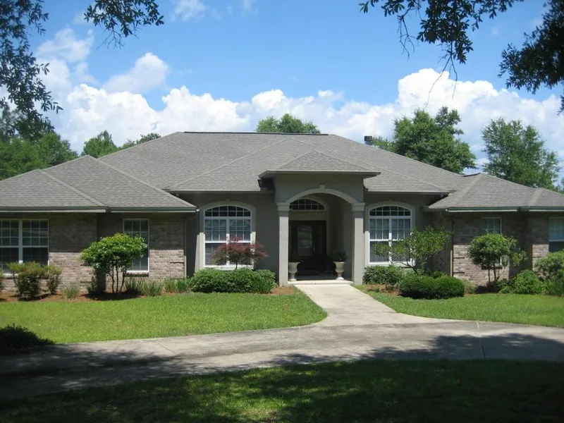 If your looking for a quiet and peaceful escape with no detail overlooked, then your search is over! Mediterranean Estate on nearly twenty acres just south of Laurel Hill! Spacious four bedroom three and a half bath Mediterranean style home complete with covered porches in a beautiful setting with plenty of space to spread out. Home features decorative concrete floors throughout the common areas. Two large living/family rooms with great views and featuring high ceilings and crown molding. Formal dining room with a wonderful faux finish coffered ceiling and ornate columns. Chef's kitchen features stainless steel appliances with double ovens, cooktop and range, beautiful and ornate concrete countertops for easy care. Lovely maple cabinets are in abundance and wrap around to a built in