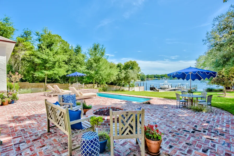 Privacy and quality abound throughout this sprawling five-bedroom waterfront estate on Joe's Bayou, offering a peaceful deep water ownership experience for discerning buyers who simply demand the best. Expertly designed and built by Reiker Homes, this builder's showcase home offers an ultra-spacious footprint, measuring 6,456 square feet, primarily all on one level. Accentuated by breathtaking water views from the living spaces, as well as the oversized master suite with a custom curved wall design, and two private office spaces, this prominence of this Craftsman-inspired Southern estate home is truly spectacular. Aged French Oak flooring is showcased throughout the home providing warmth and additional depth to the high ceilings, while custom tilework is displayed in each bath as well as the beautiful chef's kitchen. The formal dining room is accented with a decorative ceiling, offering artistic appeal to the designer property, while quartz countertops, Thermador appliances, and a spacious butler's pantry offer convenience and tranquility for all who spend time at the home. Upstairs, an oversized bedroom with an ensuite can be converted to additional entertainment, game room or office, perfect for those looking for space, privacy and flexibility. Transitioning to the exterior of the home, the water-front outdoor living spaces surrounding the brick paver pool and spa are truly exceptional. A fully covered summer kitchen with al fresco dining and living spaces is sure to delight those in search of ideal transitional spaces, while the oversized private dock with two boat lifts, and jet ski lift was designed with water lovers in mind. For the ultimate lifestyle property, showcasing the best of what the Emerald Coast has to offer, look no further than this exquisite offering on Joe's Bayou.