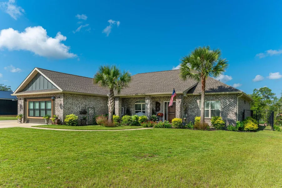 Priced 20K below appraisal completed on 08/21/2023. Beautiful 3124 sq ft All brick home situated on 5.42 AC with a natural spring fed creek that flows through. It is fenced and ready for horses. Inside you will find an open concept with a huge family and dining rooms with ten ft ceilings and crown molding. Beautiful kitchen with granite counter tops, farm sink and stainless appliances including a wonderful upgraded refrigerator and new air fry stove with convection. Spacious pantry, Cabinets have soft close doors and drawers with stainless steel Rev a shelf pull outs in bottom cabinets. Primary bedroom is very spacious with trey ceiling. The Primary bath has a lovely new claw ft. tub with shiplap wall, 8 ft. barn door and a marble shower, granite counter top and linen closet. Additional bedrooms are very spacious with the 4th being oversized and has built ins and shiplap wall, new Anderson windows & large walk-in closet. The exterior has an enormous 27 ft. covered front porch and an even larger 33 ft. covered back porch, pool and hot tub and extensive decks for enjoying evenings or morning coffee! Be sure to check out the walk-through video. Huge Barn with lighting, exhaust fans, and large deck was added in 2023. Don't forget the garden shed with side chicken coop and chicken run. According to Okaloosa County planning and zoning the property can be subdivided to 3 parcels. Raised bed gardens for vegetables and herbs. This one you have to come and see! Professional appraisal was completed 08/21/2023 at $710,000.