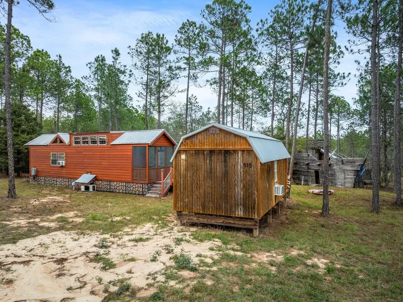 FHA and VA qualified! Walton Plantation is a community located on the North End of Walton County Just South of Paxton. Individual lot owners have access to over 3000 acres of recreational easement timber land which include areas designated for hunting, horseback riding, and ATV Riding. The dirt roads are privately and professionally maintained by the HOA. The main cabin has been nicely maintained and includes a single bedroom, a loft for additional sleeping space, a full kitchen, stackable washer and dryer and tankless water heater. The small cabin is a cozy and efficient living space with studio layout, including two overhead lofts for added sleeping or storage space. It is equipped with a half bath and is climate controlled by a wall unit.