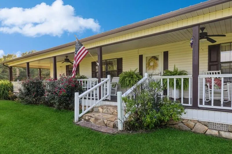 Charming country home situated on almost 8 acres in Baker! Imagine drinking coffee every morning while sitting on your wrap around porch, overlooking the neighboring cotton fields as the sun comes up. This property is meticulously maintained with fruit trees, grape vines and offers all the best of country living. Stocked fish pond with dock, massive barn and she-shed are just a few parts of this paradise. Interior of home is cozy and welcoming! Beautiful wood floors, stone fireplace and fully remodeled chefs kitchen (it is AHH-MAZING)! Both bedrooms are spacious with on-suite bathrooms that boast claw-foot tubs.