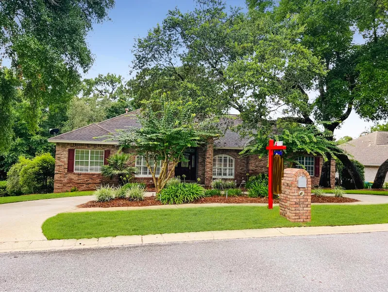 A HOME to MAKE MEMORIES in! This custom-built home is available! Location, location, location! This all brick beauty is in the sought after Rocky Bayou neighborhood, featuring gorgeous homes, sidewalks, lakes, and a golf course country club with pool. A home with many options that your family will appreciate! Let's start with a corner lot, 2 separate driveways, 3 car garage, large storage shed and lovely landscaping. Step inside and you'll find architectural details like columns, crown moldings and tray ceilings. Off the entry is a formal dining area on one side and an office space on the other. The living room greets you with a gas log fireplace and large windows that bring a tranquil view of nature indoors. Then step out onto the expansive deck for grilling or relaxing CLICK>> The kitchen is open to the living room with a breakfast bar and breakfast nook overlooking the deck and trees. You'll also appreciate the tile backsplash, center island with cooktop, Silestone counters, French door fridge and pantry. The main bedroom is spacious enough for all your furniture or a sitting area. Plus, there's access to the deck to enjoy a cup of morning coffee. Two walk-in closets with custom built-ins await you and a lovely ensuite bathroom with double vanities, a glass shower and soaking tub to enjoy. Conveniently located off the main bedroom is the laundry room with its own sink and extra cabinets for storage. A total of 4 bedrooms and 4 bathrooms (3 full and a half bath) means there's space for family and friends to stay or visit! You'll also love sharing the large family/media room! This flexible space includes a large screen TV w/built-in surround sound speakers and recessed lighting. No worries about losing power there's a home generator too! Downstairs you can step out onto the back porch and listen to the birds. Close to A rated schools, Eglin AFB, shopping, restaurants, the Mattie Kelly Arts Center $25 million dollar entertainment venue and so much more! Call today for your chance to own your piece of Niceville!