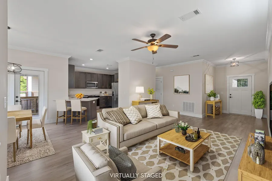 THE Niceville home you have been looking for! 1511 23rd St has been lightly lived in and meticulously maintained since being built in 2022. This home offers 4 bedrooms, 2.5 Baths, spread over 2,304 sq ft, and a spacious 2 car garage. The location couldn't be better being minutes from the back gate of Eglin AFB, Shopping, Niceville High School, and some of the best Restaurants in the area. Upon walking in, you are welcomed by the large open windows that radiate throughout the downstairs living room and kitchen. The Luxury Vinyl Flooring covers the entire main area with Crown Molding throughout as well. The living room, dining room, and kitchen all work together, creating an inviting area. The Stainless-Steel Appliances with the Gold Accented Faucet and Cabinet Pulls add that extra POP to the kitchen. The extra tall cabinets with the Granite Countertops that stretch around to a convenient Breakfast Bar will be the place to hang out for all of the gatherings. The laundry and half bath with matching accents are both conveniently located downstairs as well. The 3 bedrooms upstairs are all generously sized with large closets. The end of the hallway offers an area for a relaxing place to read, an office, or playroom. The Primary Bedroom and Bath say it all! 2 closets located in the bedroom and another one in the bath room. The Double vanity, Beautifully tiled flooring that leads into the shower with a glass door offer and a tub offer that touch of luxury you have been looking for after a long day. The covered back patio leads to your spacious back yard with a privacy fence on 3 sides and a natural line on the back side that leads to a stream. This is the house you want to call home in the heart of Niceville with all of benefits without an HOA.