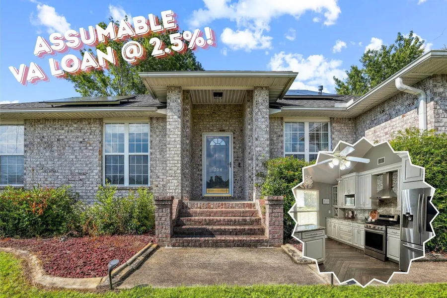 2.5% assumable VA loan! Lumio solar panels paid off with acceptable offer! Now is the time to check out this beautifully updated all-brick home situated on a 1/4 lot in Antioch Estates - a great south Crestview location and will be very convenient to the future I-10 Exit 53! Move right into this split floorplan 4 bed, 2 bath home w/formal dining room! Gorgeous herringbone pattern wood-look tile throughout - no carpet! The living room has a cathedral ceiling with architectural niche & gas fireplace with unique stone accent! The stone carries over to the kitchen pillars with hop-up bar and also counter height breakfast bar seating. This kitchen is it!! -spectacular granite countersplash, upgraded cabinets with crown moulding & soft-close drawers, gas stove w/hood, and stainless-steel -touch screen French door refrigerator included! The master suite is sizable with remote controlled blinds ...