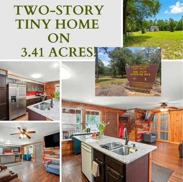 Who wants to live in a 2-STORY TINY HOME.. ON 3.4 ACRES.. steps away from the BLACKWATER RIVER STATE FOREST?