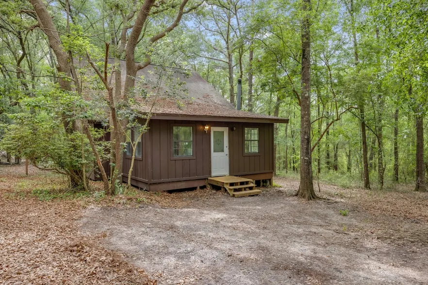 Welcome to country living in this cozy 3-bedroom, 2-bathroom cabin-style home. Boasting a warm and inviting living space, this charming retreat welcomes you with a large, open living area, an abundance of natural light, and a cozy fireplace perfect for chilly evenings. The main floor contains the master suite with two additional bedrooms and an adjoining Jack and Jill bathroom upstairs. Outside, the expansive deck beckons you to unwind amidst the beauty of the outdoors, offering the perfect setting for entertaining or simply enjoying the peaceful surroundings. Conveniently located minutes from Interstate 10, yet secluded, this enchanting woodland retreat promises a lifestyle of tranquility and natural beauty. Property has a brand new HVAC.