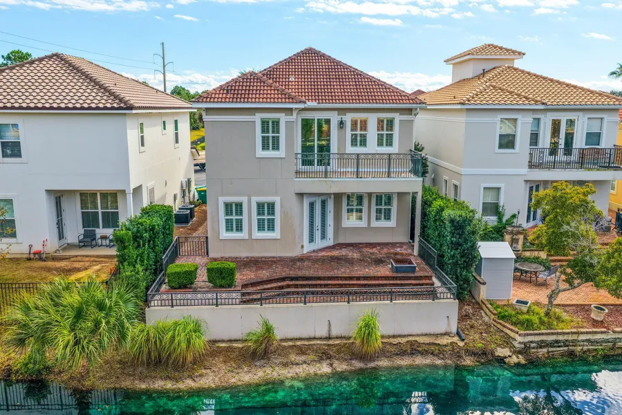LAKEFRONT OASIS in the heart of Destin! LOW HOA!! GATED COMMUNITY. Sunrise to the East and Sunsets to the West. Privately positioned in a quiet rear cul-de-sac, this Mediterranean masterpiece features a real clay tile roof, hard-coat stucco exterior, and STUNNING multi-level paver outdoor living areas overlooking peaceful sunset views across the lake. **NEW INTERIOR PAINT** Enjoy 10' ceilings throughout, crown molding, plantation shutters, wood floors, Spanish lace walls/ceilings, granite kitchen counters, stainless steel appliances, cultured marble baths, and a master suite with a private balcony over the water. Two newer A/C units-5 yrs add comfort and value. Brand new hot water heater (2025), Fresh New paint in the interior (Dec 2025). Dishwasher/Disposal/Full Size Washer & Dryer -5Yr- Located in a gated community with a community pool, you're just minutes from Destin Commons, Silver Sands Outlet Mall, Sandestin, multiple public and private golf courses, Legendary Marina, entertainment, dining and public beach access. Don't miss this RARE waterfront opportunity in Calusa Bay! THIS IS A MUST SEE! BOOK YOUR SHOWING TODAY!