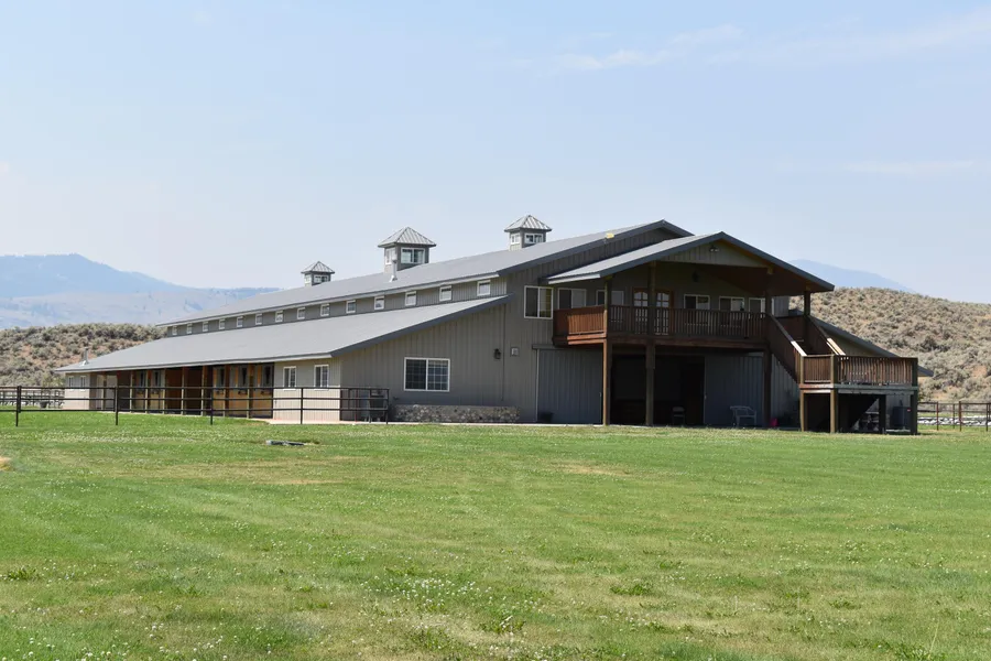 Equestrian paradise on 114.7 irrigated acres originally built for Arabian show horses, complete luxury. Barn #1 has vaulted ceilings wrapped in clear cedar rubberized floors and thoroughly heated with 31 + movable stalls. This barn also includes a lovely 2 bedroom 1 bath apartment on the second floor with large viewing windows from above. Hot and cold H2O for horse washing facility, heated tack room, 4 outside paddocks that flow into numerous holding corrals. The indoor riding arena is 150x275 free span. Barn #2 is set up for easy unloading of stall bedding and supplies with extra thick plywood walls. The fields are growing a mix of grass hay and alfalfa, 1 full pivot and a 1/2 pivot, 12-inch pressurized community irrigation line & 2 wells.