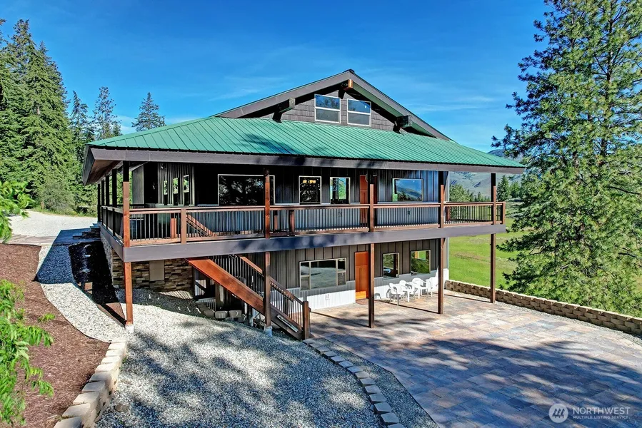 Beautiful custom home tucked away in the upper hills above Wolf Creek. Sited with gorgeous views of the Mazama corridor and northern peaks, sprawling meadows, rich wildlife, a rare setting and private place close to ski trails and mountain adventure. The seller's family purchased this land directly from the Thompson Homestead Family more than 50 years ago. Extraordinary lodge style residence built with attention to detail and fire safety materials. Top quality construction using ICF block with high insulation. Lower level has a complete second kitchen and ground floor living spaces. Beautiful, covered decks, open patio and fire pit. 2866 SF garage/shop with 50 amp outlet. Powerful wired diesel generator. Location close to town.