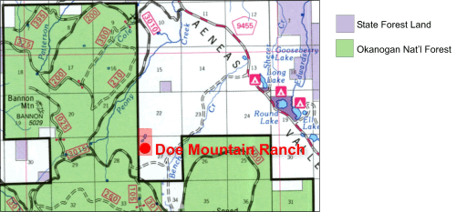 Doe Mtn Ranch is perfect as a retirement retreat youve always envisioned or a vacation home that will stay in your family for generations. Everything on the property is run by solar power or propane or wood fireplace. There is a drilled well, phone and computer service to the main house. The main house has two bedrooms one bathroom with a spacious kitchen, sunken living room and large wrap around deck on the upper floor. The lower level includes a two car garage, unfinished daylight basement, laundry and power room. You will have all the amenities to be a working ranch with a large shop, carport, barn, coral and storage or wood shed. There are two separate rustic cabins with wood stoves and propane for entertaining your guests over looking the private. There is also a pond. You will have complete privacy with the Okanogan National Forest on your west line for over 3300 feet.