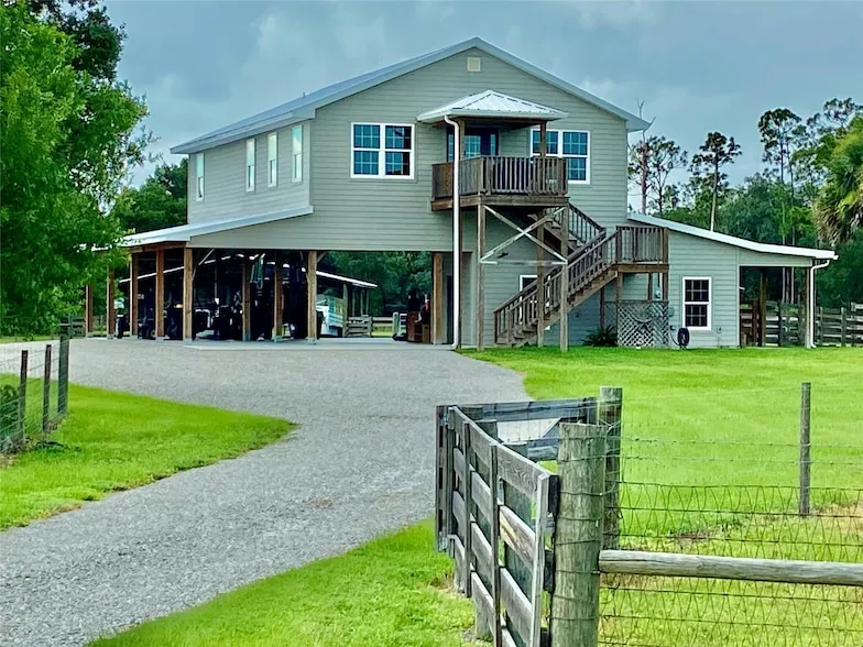 25 ACRES!! The perfect equestrian/livestock property that still has the unique 'Old Florida' charm. The 4BR/3.5BA 2020 custom home features a large kitchen with plenty of counter space and bar seating to host your family gatherings, and a large family room. From the vast 25 acres that is cross fenced in four different pastures all with improved grasses for your livestock and horses, to a 4 stall horse barn, a working set of cow pens that boasts a covered concrete slab to shade the squeeze chute area. In addition, you will find a riding arena, spacious pole barn, dog pens, and large shop with 2-50 amp plugs to meet your welding or heavy equipment needs. The exterior is hardy board concrete siding, metal roof, and has impact windows installed throughout. Opportunities are endless!